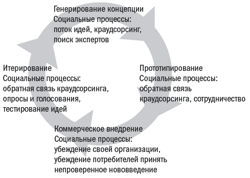 Каждая из этих стадий включает в себя социальные процессы взаимодействия между изобретателями, сотрудниками, потребителями, бизнес-партнерами, критиками и многими другими. Таким образом, инновации по многим показателям идеально подходят для онлайнового социального нетворкинга. В особенности это касается отношений между компаниями и их потребителями, которые за счет вовлечения при помощи онлайновых социальных сетей трансформируются из однонаправленного «сделаем и будем надеяться, что они придут» в модель истинного партнерства. Вооруженные информацией о потребителях и о том, чего они хотят, компании могут с большей уверенностью выходить на новые рынки. Поскольку к их идеям прислушиваются, клиенты чувствуют бльшую ответственность за свои отзывы и бльшую благодарность, когда их отзывы влияют на дизайн новых продуктов. Это взаимовыгодное сотрудничество для обеих сторон.