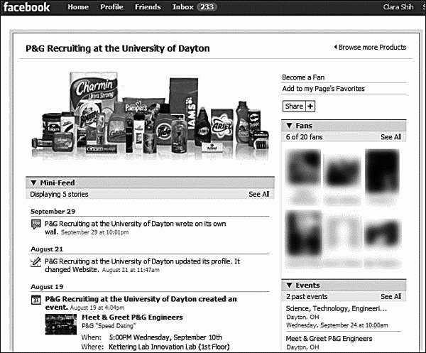 Рис. 7.4. Страница Facebook P&G, посвященная рекрутингу в Университете Дайтоны
