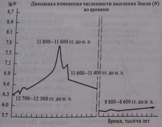 Это интересный вопрос. Тем, кто книгу «Предсказание прошлого» не читал, скажу, что речь в ней шла о глобальной планетарной катастрофе, которая приключилась на планете 12 ООО лет назад и буквально стерла с лица планеты предыдущую цивилизацию. Свидетельств этой катастрофы много. Свидетельств существования высокоразвитой допотопной цивилизации чуть меньше. Но они есть — за подробностями отсылаю к книге. А сейчас сообщу следующее: мне не так давно попался на глаза график изменения численности населения планеты. Он чрезвычайно любопытен.