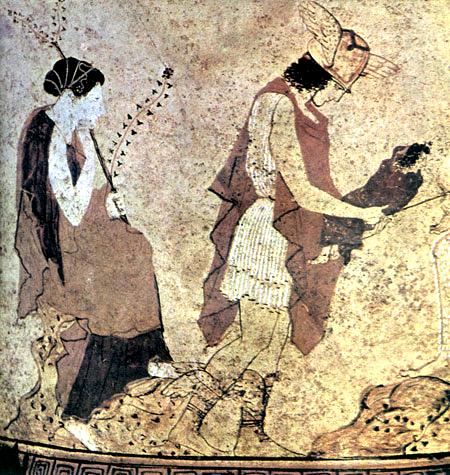 Гермес с младенцем Дионисом. Роспись кратера. V век до н. э. Ватикан