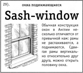 Обычная конструкция окон в Англии несколько отличается от привычной нам: рамы не распахиваются, а поднимаются. Сдвигая рамы вертикально относительно друг друга, можно открыть половину окна.