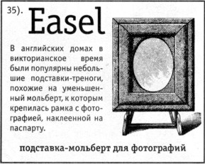 В английских домах в викторианское время были популярны небольшие подставки-треноги, похожие на уменьшенный мольберт, к которым крепилась рамка с фотографией, наклеенной на паспарту.