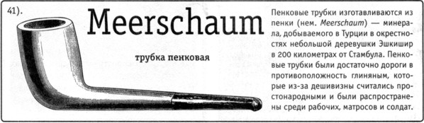 Пенковые трубки изготавливаются из пенки (нем. Meerschaum)— минерала, добываемого в Турции в окрестностях небольшой деревушки Эшкишир в 200 километрах от Стамбула. Пенковые трубки были достаточно дороги в противоположность глиняным, которые из-за дешивизны считались простонародными и были распространены среди рабочих, матросов и солдат.
