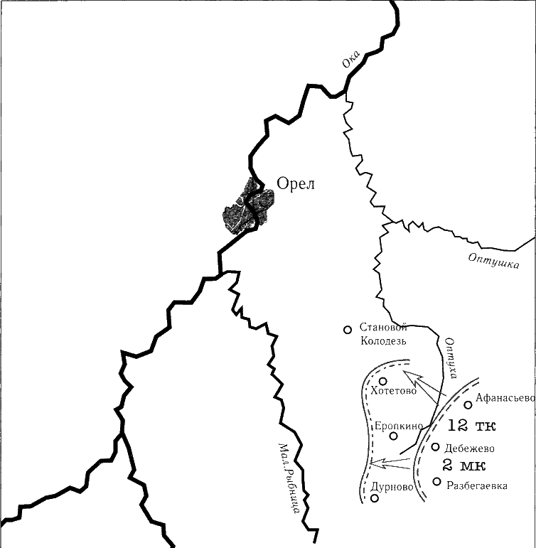 Наибольшие потери в людях из всех соединений армии понес 12-й танковый корпус — 3185 чел. К началу Орловской операции корпус имел 132 танка Т-34 и 70 танков Т-70, в ходе Орловской операции 76 танков были потеряны безвозвратно, 82 танка было подбито, но подлежало восстановлению, 9 танков было потоплено при переправах и застряло, 29 танков вышло из строя по техническим неисправностям. В период сосредоточения перед вступлением в бой 12-й танковый корпус, в дополнение к имеющимся 854 автомашинам, получил еще 190, потери в ходе Орловской операции составили 119 автомашин.299 Из 76 потерянных танков 7 танков Т-34 и 1 танк Т-70 сгорели в результате действий авиации противника, 28 Т-34 и 38 Т-70 сгорело от артогня, 1 Т-70 был безвозвратно потерян в результате подрыва на мине.300