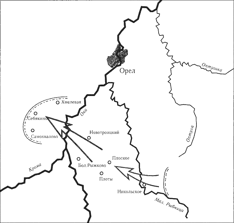 3. Разгранлинию между Брянским и Центральным фронтами с 24.00 26.7. 1943 г. установить: до Никольского — прежняя, далее Хомуты, Мешкова (оба пункта для Центрального фронта включительно).