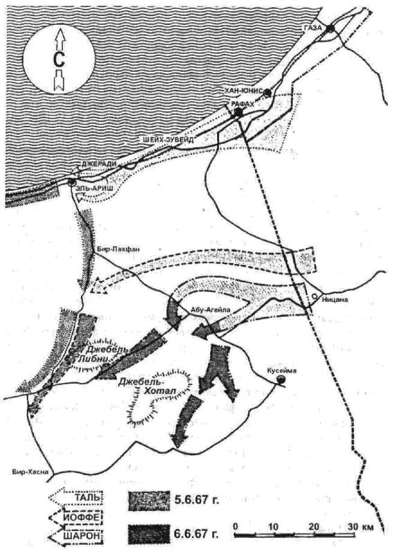 Передвижения трех дивизий ЦАХАЛа на Синайском полуострове в первые двое суток войны