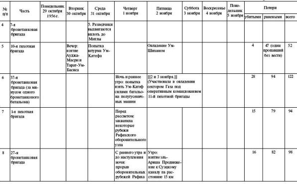 Даты наиболее крупных акций израильских подразделений (сухопутные силы) [[слева направо]] [79]