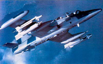 Вооружение. На шести подкрыльевых узлах подвески может размещаться УР класса «воздух- воздух» с ТГС AIM-9 «Сайдуиндер», ракеты класса «воздух-поверхность» AGM-65B «Мейврик», контейнеры с 30-мм пушками «Дефа»533 (120 снарядов на ствол), 12,7-мм пулеметами (120 патронов) или 7,62-мм многоствольными пулеметами «Миниган» (1500 патронов). Самолет может оснащаться блоками с НАР калибром 81 мм, 68 мм или 50 мм, а также свободнопадающими бомбами.