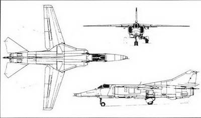 Следующим шагом явилось применение крыла с новым наплывом, на котором разместилось переднее горизонтальное оперение (ПГО). Было решено отказаться от регулируемого воздухозаборника, что обусловливалось спецификой боевого применения ударного самолета (высокая максимальная скорость на большой высоте не имела особого значения для ударной машины, «работающей», преимущественно, у земли и густо увешенной разнообразным вооружением).