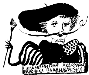 Это, конечно, стихи были не бог весть какие, но Кате с Маней понравились. Потом они все трое взяли из альбома мамину фотокарточку, нарисовали прямо на маме усы, большой чёрный берет и широкую чёрную блузу с бантом, какие в старину носили художники, приклеили фотокарточку на стенгазету и нарисовали под ней большие красивые буквы: "Знаменитый художник Вероника Владимировна". А потом ещё Катя написала своей рукой такие стихи: