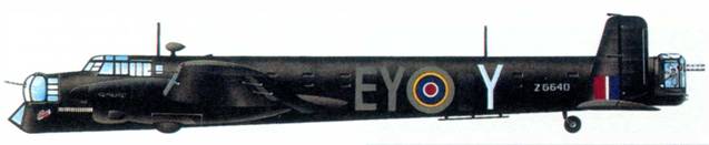 Отметки на носу изображенного «Манчестера» говорят о выполнении им к весне 1942 г. 10 боевых заданий. Машине довелось вернуться из еще четырех полетов, прежде чем она погибла во время пятнадцатого задания – в ходе налета на доки «Блем-унд-Фосс» в Гамбурге.