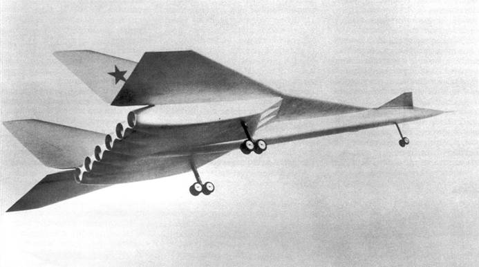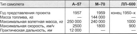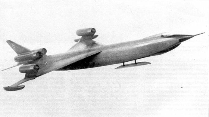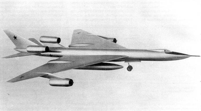 В 1956 г. в ОКБ началось создание стратегического самолета с межконтинентальной дальностью М-50, предназначенного для замены бомбардировщика ЗМ. В сравнительно короткий срок был спроектирован и построен уникальный по тем временам летательный аппарат, рассчитанный на достижение скорости, близкой к М=2, и межконтинентальной дальности полета. Решающую роль в создании М-50 сыграли такие специалисты ОКБ Мясищева, как Л.Л. Селяков (главный конструктор М-50), JI.И. Балабух, И.Б. Заславский, Л.М. Роднянский, В.А. Стопачинский, В.А. Федотов. В работах по программе принимали участие и крупнейшие ученые ЦАГИ М.В. Келдыш, А.И. Макаревский, Г.С. Бюшгенс и другие. Совместно с ЦАГИ было проанализировано более 30 вариантов аэродинамической компоновки самолета, прорабатывался, в частности, самолет, выполненный по схеме «утка» с тонким (относительная толщина 3,5- 3,7%) треугольным крылом, стреловидным цельноповоротным горизонтальным и вертикальным оперением. Конструкция самолета обеспечивала возможность длительного полета на малой высоте с большой скоростью.