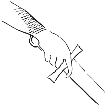 Мы видели, что в бронзовом веке многие держали мечи указательным пальцем за вздымающиеся «плечики» в том месте, где встречались клинок и рукоять. С тех пор меч продолжали иногда брать таким образом, за исключением немногих случаев, когда форма рукояти или лезвия делала захват невозможным. Основная задача рикасо – обеспечить плоский утолщенный край, на который можно было упереть палец.