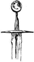 Все это дело с маркированными навершиями очень усложняется тем фактом, что существует множество экземпляров (в основном XVI–XVII вв., но некоторые относятся и к XV в.), которые сплошь проштампованы клеймами, не имеющими никакого отношения к оружейнику. Между серединой XVI в. и концом XVIII в. их использовали как гири для магазинных весов, и значки принадлежат мясникам, булочникам и свечных дел мастерам, которые приспособили оружие для собственных целей. Что еще хуже, многие из таких наверший снова приспосабливали к крестовинам и клинкам, а в результате появились мечи, все детали которых являются подлинниками, но возникают трудности. Те немногие из существующих мечей XIV в. с маркированными навершиями, которые никогда не разбирали и которые с полной уверенностью можно назвать подлинниками, приходится подвергать необычно строгим проверкам, прежде чем признать оригиналами. Один из таких клинков из своей коллекции я опишу, поскольку с ним связан параллельный рассказ о клейме кузнеца и надписях на лезвии.