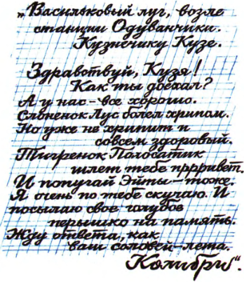 Для того чтобы ни у кого не было никаких сомнений в правдивости моего рассказа, я наклеиваю на страничку моего дневника письмо, которое получил недавно от своей приятельницы птички Колибри. Вот оно: