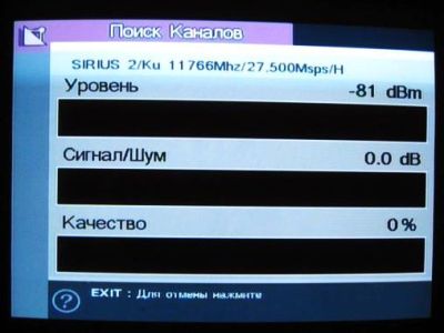 Что мы видим на этом фото? Безрадостную картину-качество сигнала-0! Собственно говоря, а чего следовало ожидать? Антенна ведь пока "смотрит" в сторону спутника очень приблизительно.