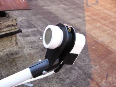 Вторая антенна. Которую я собираюсь настроить на Eutelsat W4 36E (НТВ+). Тут проще — конвертор один. Причем поскольку он круговой поляризации — не очень важно, как он будет развернут внутри держателя. Лучше всего — кабелем вниз, чтобы на нем не скапливались осадки: