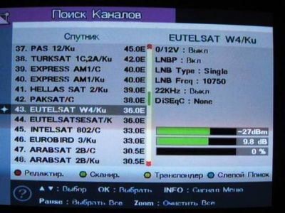Все гайки затягиваются, когда сигнал максимален. Не забываю про проверку в обоих поляризациях. Сканирую транспондеры Хотберда и проверяю какие-нибудь бесплатные каналы визуально.