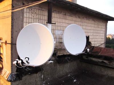 Кабеля притягиваю стяжками, чтобы ничего не болталось. Остается не в натяжку прикрепить кабель к тросику, тросик спустить вниз и натянуть. Развести в квартире кабель, подключить ресивер, телевизор и смотреть спутниковое ТВ:)