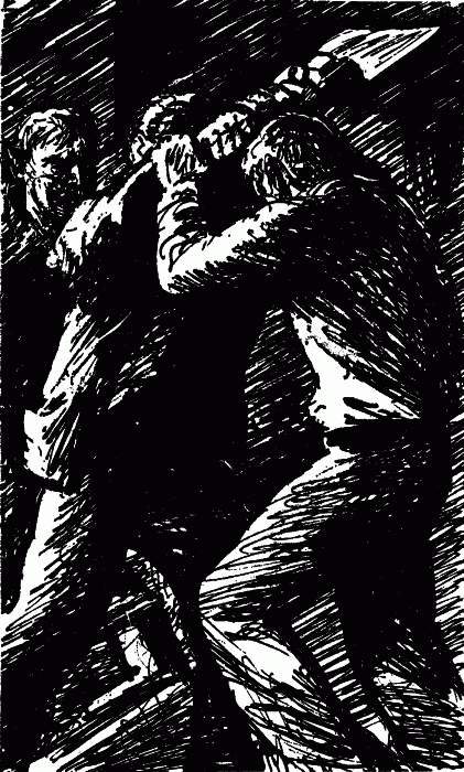 Старик, видно, был без оружия. Он медленно двинулся ко мне. Вероятно, он намеревался затеять со мной драку и дать возможность Фрицу стукнуть меня топором сзади. Мне оставалось лишь одно: напасть на Фрица и вырвать у него топор. Фриц, словно угадав мою мысль, сжал топор двумя руками и внимательно следил за мной. Пора, иначе будет поздно. Ни секунды промедления. Я не боялся их, да и топор был не страшен; меня пугало другое: как я ударю топором человека, на это у меня не хватило бы духу. Я глянул на окно. Во мне было около центнера весу — оконный переплет не выдержит. Теперь Фриц двинулся на меня. В его глазах застыл страх перед тем, что он собрался сделать, чтобы спасти отца от суда; однако он надвигался — неуклонно, с отчаянной решимостью.