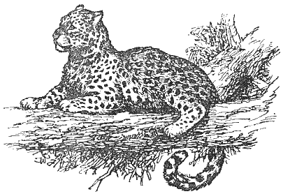 Леопард — изящный зверь с длинным гибким телом на невысоких сильных ногах. Длина тела леопарда 120–170 см, хвоста — 75–102 см, высота в холке 50–78 см, вес — 32–60 кг (рис. 14).