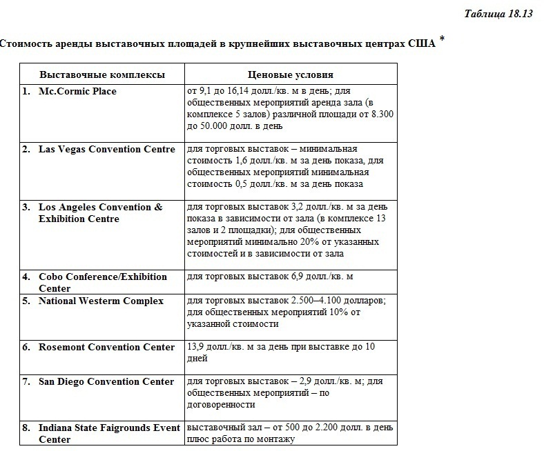 Участие в международной туристической выставке требует высокого уровня затрат. Так, только аренда 9 кв. м выставочной площади стоит в среднем $2000, монтаж стенда — $1000. Минимальная стоимость аренды 1 кв. м площади на МИТ — $150. В конечном итоге, учитывая дополнительные затраты, сумма достигает $10.000–$30.000 [45] . Исходя из этого, небольшие турпредприятия объединяются и выступают от лица определенного региона, поскольку для них участие в международной выставке непомерно дорого.