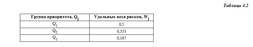 Согласно имеющимся методикам устанавливаем вес каждой группы в соответствии с уровнем приоритетности (начиная с группы рисков с наименьшим приоритетом) по формуле