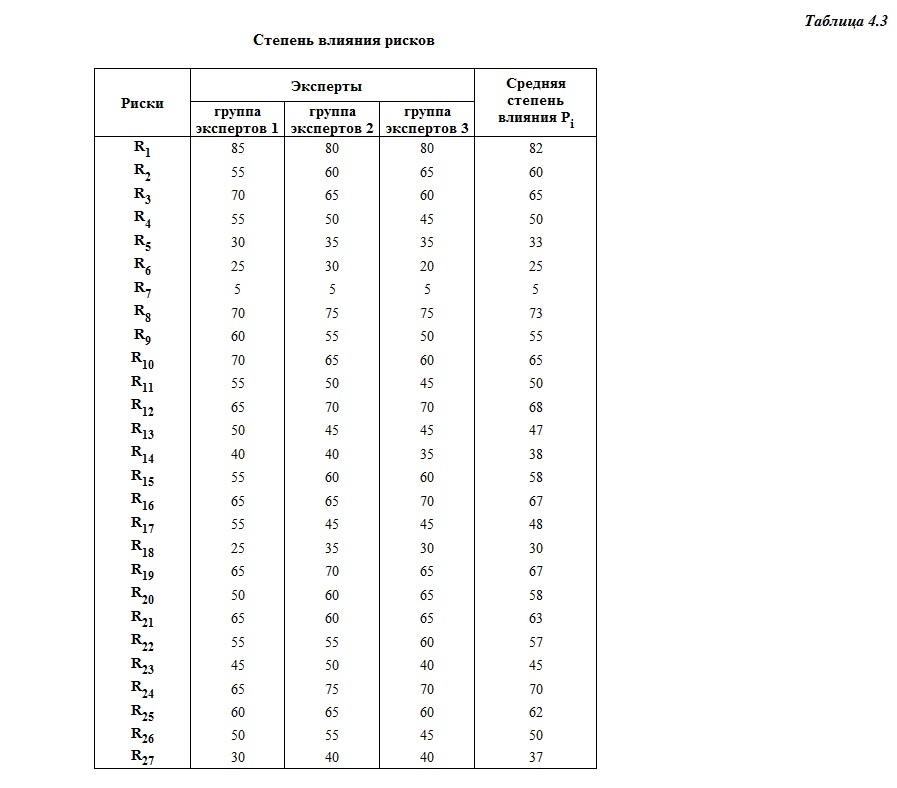 В зависимости от степени влияния перечень рисков будет выглядеть согласно табл. 4.4.