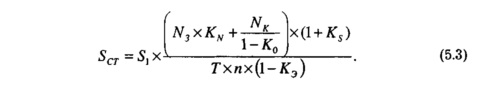 Введя коэффициент площади размещения экспозиции на стенде KЭ и учитывая, что в этом случае SСТ= SПЕР/(1—KЭ), легко определить полную площадь стенда: