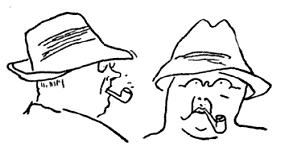 Вот мистер Г. К Честертон;я изобразил его с крылышками, отчасти потому, что повидать его я мог только мельком, отчасти же по той причине, что он отличается райской жизнерадостностью. К сожалению, в момент нашего знакомства он был, по-видимому, стеснен несколько официальной ситуацией; он мог только улыбаться, но его улыбка стоит трех. Если бы я мог написать о его книгах, о его поэтическом демократизме, о его гениальном оптимизме, получилось бы самое веселое из моих писем; но я взял себе за правило писать лишь о том, что видел своими глазами, поэтому я представляю вам объемистого человека, напоминающего своими объемами Виктора Дыка, [93] с мушкетерскими усиками и застенчиво-лукавыми глазками под пенсне, с растопыренными ручками, как полагается толстяку, и с развевающимся галстуком; это одновременно ребенок, великан, кудрявый барашек и буйвол; у него крупная голова с каштановой шевелюрой, смуглое лицо с мечтательно-капризным выражением; с первого же взгляда он вызвал во мне застенчивость и пылкое влечение. И больше я его не видел.