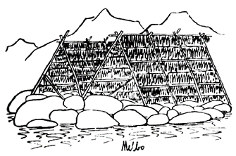 За коричневой деревней – круглые хижины из дерна. Здесь живут лопари, которых мы видим впервые. Хоть они и оседлые, но какая же у них нищета! Пропасть ребятишек, все рахитичные и пугливые, как летучие мыши. Каркас хижины сделан из жердей, он покрывается дерном, и все это подпирается камнями и палками. Сверху вставляется жестяная труба, и жилище готово. И помещается в нем не меньше дюжины человек. Как лопари добывают себе пропитание, не знаю, но они не попрошайничают и не воруют. Среди них немало русых и светлоглазых, но по глазам и скулам видно: это уже совсем другая раса.
