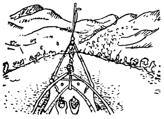 Тучи ползут по серым лысым скалам, моросит холодный дождь, туманы поднимаются над черными камнями, открывая темный глен, унылый, как вой собаки. Миля за милей – ни души, ни жилья, а если и промелькнет домик, то из того же серого камня, что и скалы вокруг, и стоит он один-одинешенек на протяжении многих миль. На озере нет рыбаков, на речке – мельницы, на пастбище – пастухов, на дорогах – путников. Только в более плодородных долинах пасутся шотландские быки с длинной косматой шерстью; они стоят под дождем или лежат в болоте; поэтому, вероятно, и обросли они такой густой шерстью, как я нарисовал.