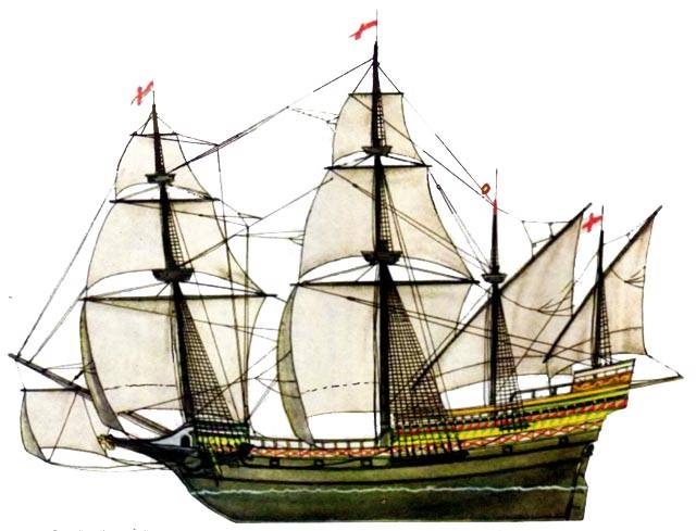 Наиболее распространенное торговое судно – флейт – имело три мачты, несущие прямые паруса на фоке и гроте и косой парус на бизани (рис. 30). Характерная особенность флейта – закругленная корма и заваленные внутрь – как у испанских галеонов – борта. Такая форма бортов не была связана с военными соображениями (затруднить противнику взобраться на корабль во время абордажа). Дело в том, что портовые пошлины взимались соразмерно ширине корабля, и лишь в 1669 году, когда ввели новую систему начисления таможенных сборов, флейты стали делать значительно шире. Небольшая осадка этих судов позволяла им заходить в устья рек.
