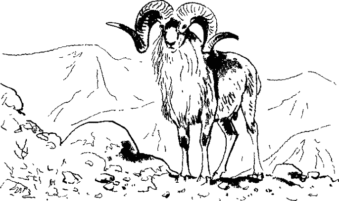 Архар неподвижно стоял среди скал, такой же серый, как и они. Далеко внизу по реке проносились катера, плыли лодки, но люди не замечали неподвижного архара среди камней и скал.