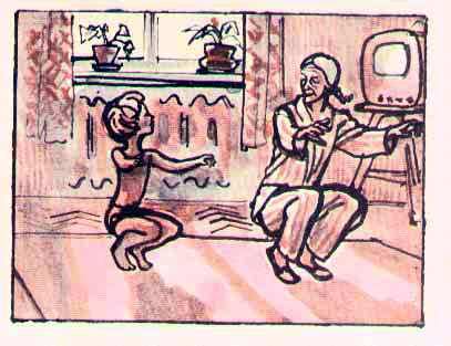 А когда снизу пришёл разъярённый сосед — инспектор Госстраха Черногуз-Брудастов, — то застал папу, сидящего от хохота на полу, горько плачущую маму и Витю, деловито вешающую щит на место.