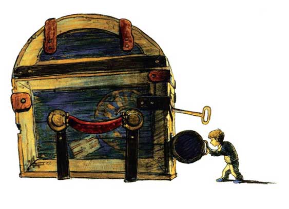 Дело в том, что неделю назад в комнату поставили старый сундук. Правда, выглядел тот совершенно новым: папа покрыл его деревянные бока лаком, а кованые железные полосы и замок на увесистой старинной дужке покрасил бронзовой краской. Только тяжёлый ключ с узорчатой бородкой остался всё таким же ржавым и настоящим.