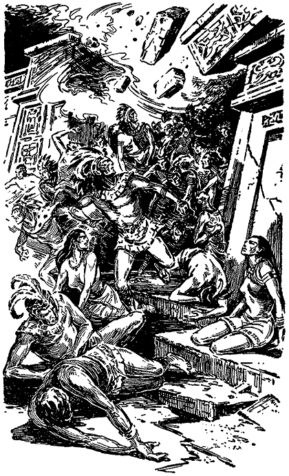 Может быть, именно такие взрывы страшного оружия древних и видели мы только что в небе в виде искр на затемненном диске Луны. Конечно, не эти спасительные взрывы были причиной начавшихся бедствий, а сближение планет, которое не успели предотвратить эти взрывы распада…