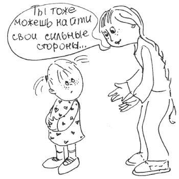 • Самый эффективный способ – помочь ребенку обнаружить свои сильные стороны. Иногда задатки очевидны, например ребенок может иметь чудесный голос и хорошее чувство ритма. Чаще способности менее заметны, однако они точно есть. Например, некоторые дети удивительно чувствительны к трудностям других людей. У других хорошее воображение, помогающее им находить новые решения задач. У третьих милый, добродушный характер.