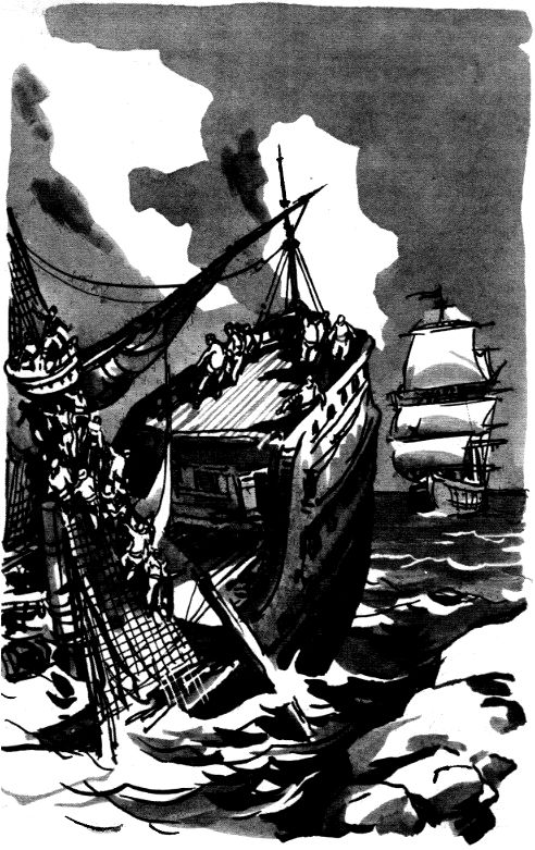 Однако другие куда более неприятные размышления вскоре заслонили эти мысли. Каковы могут быть намерения этого проклятого каторжника-доктора? Будь у Истерлинга возможность пойти на абордаж, он не опасался бы ничего, потому что даже его призовая команда на «Санта-Барбаре» вдвое превосходила численностью экипаж Блада. Но как подвести искалеченный галион вплотную к борту «Синко Льягас», если Блад будет этому препятствовать? Если же после своей схватки с «Бонавентурой» Блад замыслил недоброе, то «Санта-Барбара» станет беспомощной мишенью для его пушек.