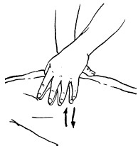 Растирание можно выполнять и подушечкой среднего пальца одной руки, производя им прямолинейное, и кругообразное движения и штрихование. Этот вид растирания применяется на межреберных и межпястных промежутках.