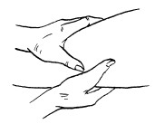 Рис. 35. Разминание мышц в области тазобедренного сустава