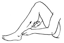 Массируемую ногу ставят на пол (на ковер, поролон или палас), а пяткой другой ноги растирают пальцы, подъем стопы, голеностопный сустав и ахиллово сухожилие сначала прямолинейно, затем поперек и кругообразно.