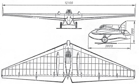 Схема ракетного планера «РП-1» («БИЧ-11» с двигателем «ОР-2»)