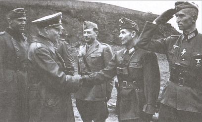 Командующий 1-й танковой армией вермахта генерал-полковник Эвальд фон Клейст здоровается с представителем венгерской армии, соединения которой действовали на южном фланге советско-германского фронта. Осень 1941 года (Bundesarchiv)
