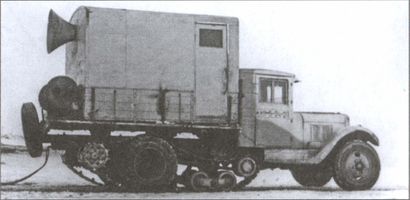 Фургон на базе ЗиС-5 с дополнительными катками и гусеничной лентой на задней оси для повышения проходимости. В самом фургоне находится звукоустановка для пропагандистской борьбы