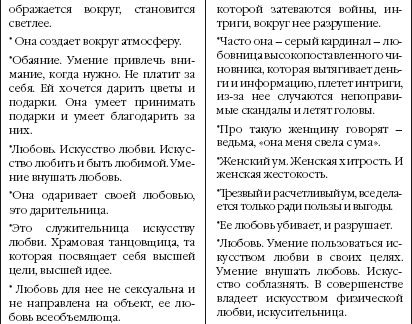 Гармоничная женщина поведенчески гибка. Она прекрасно совмещает в себе все роли и виртуозно маневрирует между ними. Для любимого мужчины она легко станет шлюхой в постели и хозяйкой в быту, амазонкой на работе и охотницей в соблазнении…
