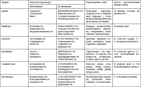 Теперь посмотрим в следующей таблицу. В ней вы можете найти качества характера и характерные слова для шести чакр.