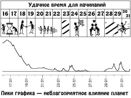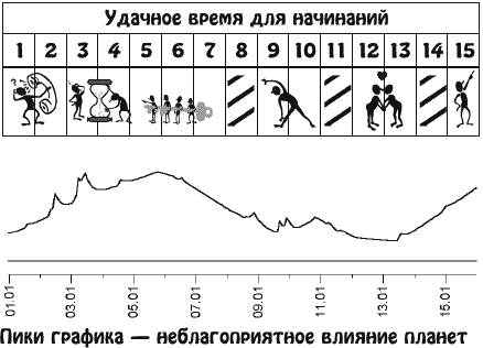 Приводимые графики показывают динамику неблагоприятного влияния планет. Пики графика – точки наиболее сильного воздействия неблагоприятных факторов на здоровье и дела человека.
