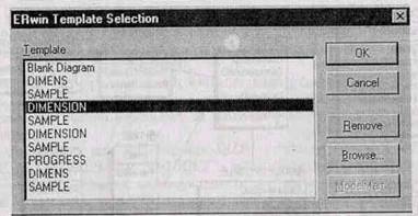 ERwin поддерживает методологию размерного моделирования благодаря использованию специальной нотации для физической модели -Dimensional. Наиболее простой способ перейти к нотации Dimensional -при создании новой модели (меню File/New) в диалоге ERwin Teamplate