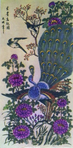 Павлин. Лубок из мастерской на улице Барабанов (Ханой). Вьетнам.
